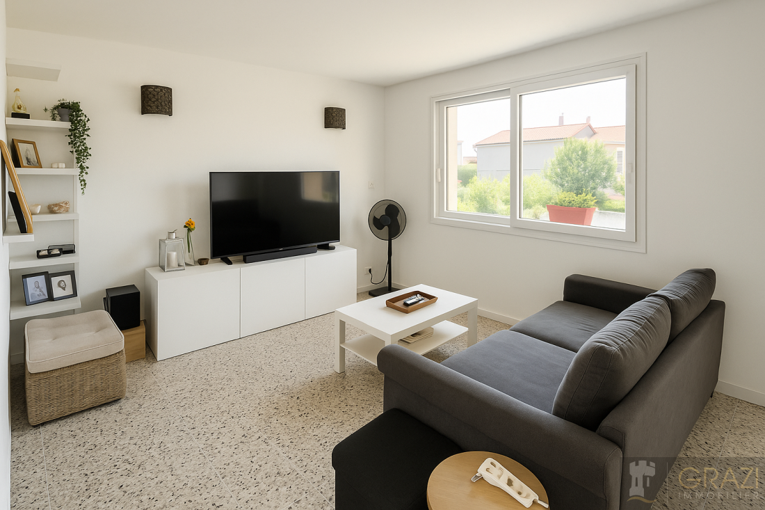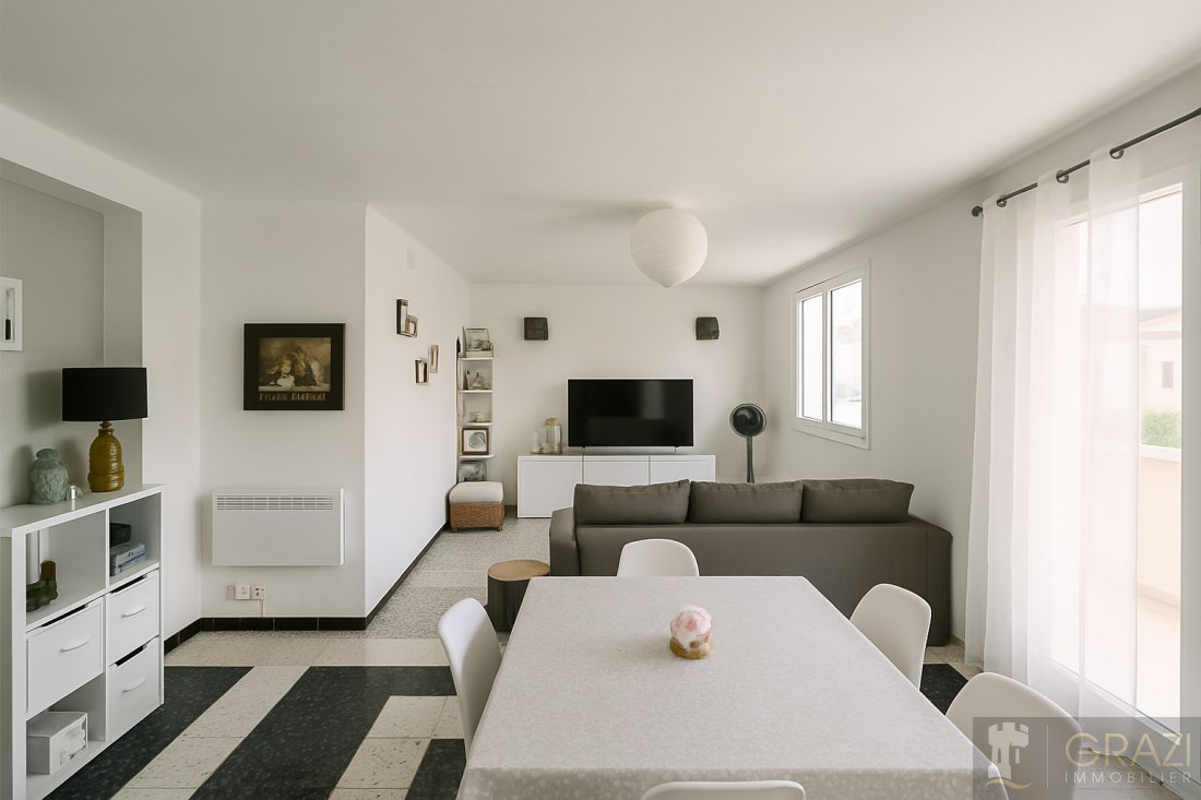 Emplacement idéal : Au cœur de La Seyne-sur-Mer, découvrez ce superbe appartement T3 de 65m² carrez ( 71 m² habitables), situé au 1er étage d’un petit immeuble de 3 étages. Exposé plein sud et traversant, il baigne dans une lumière naturelle toute la journée. Aucun travail à prévoir : posez vos valises et profitez ! Un espace de vie généreux: - Salon-séjour de 25m² avec balcon - Cuisine séparée et entièrement équipée, avec buanderie pour plus de praticité. - Coin nuit bien distinct : 2 chambres spacieuses, une salle d’eau moderne et un WC séparé. Atouts majeurs: - Isolation renforcée par les murs intérieurs pour un confort thermique optimal. - Grands placards muraux pour un rangement optimal. - Menuiserie PVC double vitrage oscillo-battant pour un confort thermique et acoustique. - Possibilité d’installer la climatisation pour un été au frais. - Potentiel d’aménagement : possibilité de créer une 3ème chambre selon vos besoins. Garage de 11m², cave de 6m² et Parking collectif sécurisé derrière un portail, pour plus de tranquillité. Un coup de cœur à saisir: cet appartement allie espace, luminosité et fonctionnalité, dans un cadre calme et bien situé. Visitez vite, il n’attendra pas ! Estimation des coûts annuels d’énergie du logement entre entre 990€ et 1380€ par an Honoraires à la charge vendeur Les informations sur les risques auxquels ce bien est exposé sont disponibles sur le site Géorisques : www.georisques.gouv.fr L'Agence immobilière Grazi immobilier, Recherche appartement, villa, maison, mas ou garages Toulon Ouest/ Est/ Centre, six-fours, La Seyne sur mer, Sanary, Bandol. AGENCE GRAZI IMMOBILIER TOULON 9 pierre Renaudel 83200 Toulon Contactez-nous AGENCE GRAZI IMMOBILIER TOULON SIX-FOURS-LA-PLAGE 61. Rue De La Farandole . 83140 Six-fours *Les photographies présentées ont fait l’objet d’un traitement numérique à l’aide d’un logiciel de retouche, afin d’optimiser leur rendu visuel (luminosité, contraste, couleurs, etc.). Ces ajustements, réalisés dans le respect de la réalité du bien, visent à mettre en valeur les espaces et les détails architecturaux, tout en restant fidèles à l’ambiance et aux caractéristiques du lieu.*