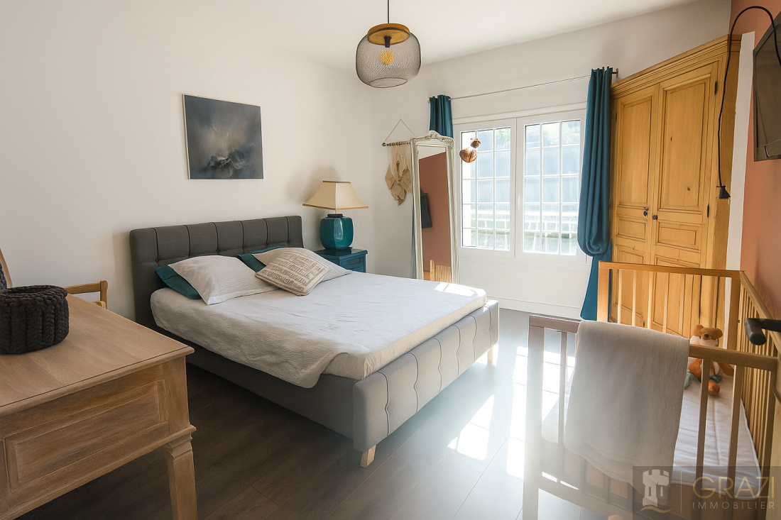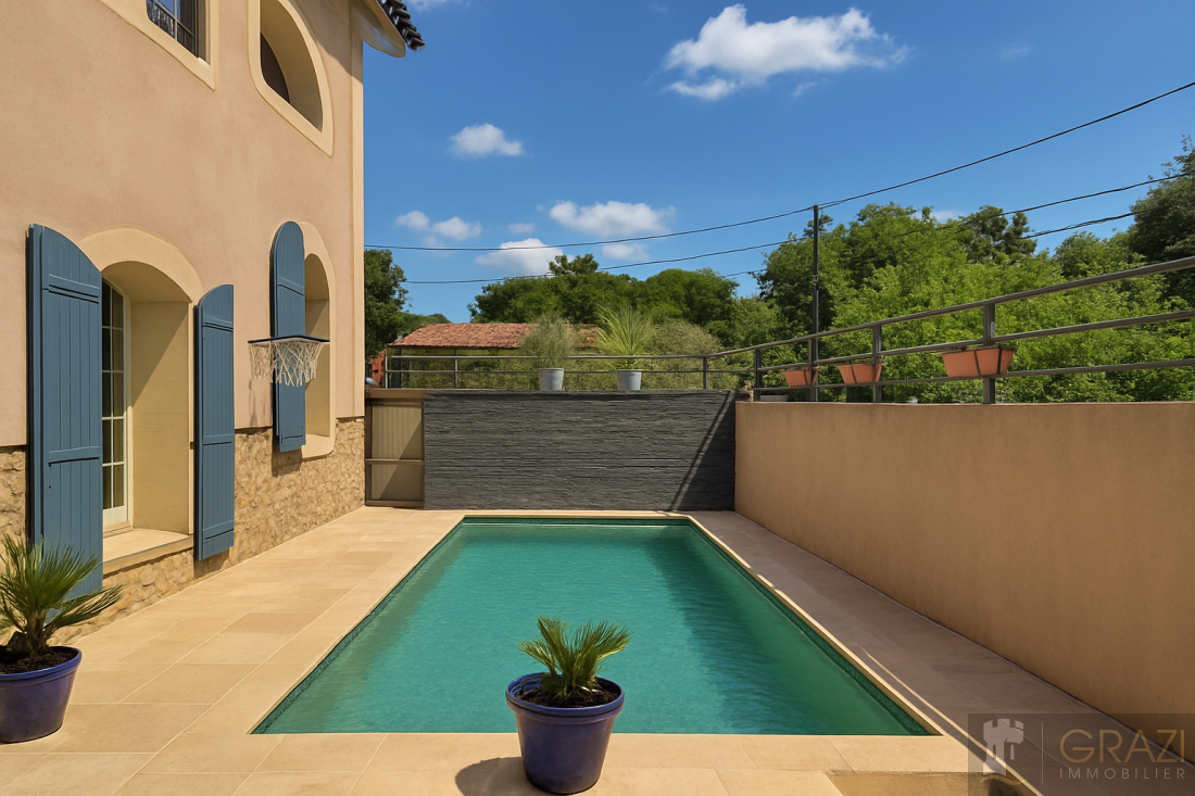 Imaginez une maison où le temps s’arrête, où chaque pierre raconte une histoire…Ancienne écurie et chapelle du XIXe siècle, cette perle rare a été métamorphosée en une demeure atypique et lumineuse, alliant le cachet de l’ancien à l’élégance contemporaine. Un lieu unique, baigné de soleil et de sérénité, niché au fond d’une impasse paisible à *Ollioules*, entre mer et colline.---* UN REZ-DE-CHAUSSÉE À COUPER LE SOUFFLE*Dès l’entrée, vous serez **séduit par l’espace et la lumière** :- Un séjour-cathédrale de 65 m², ouvert sur une cuisine équipée haut de gamme, où les volumes généreux et les poutres apparentes créent une ambiance chaleureuse et conviviale.- Une terrasse de 50 m² exposée plein sud, bordée d’une piscine pour des moments de détente en famille ou entre amis.- Un jardin secret au nord, agrémenté d’arbres fruitiers, d’une cuisine d’été, d’une buanderie et de WC extérieurs pour profiter pleinement de l’extérieur.*Et comme un clin d’œil à l’histoire…*- L’ancienne chapelle, transformée en salle de musique (21 m²), un espace magique où résonnent encore les mélodies du passé. Aménageable en suite parentale pour plus d’intimité---* UN ÉTAGE DÉDIÉ AU CONFORT ET À LA DÉTENTE*À l’étage, *l’espace est pensé pour le bien-être de toute la famille* :- *3 chambres de 13 m², douillettes et lumineuses.- *1 chambre de 18 m², spacieuse et apaisante.- Une salle d’eau avec WC, une salle de bain pour des moments de détente, et un dressing indépendant pour ranger élégamment vos affaires.--- DES ANNEXES POUR UNE VIE SANS COMPROMIS- Une cuisine d’été de 13 m², idéale pour les repas en plein air.- Une buanderie et des WC supplémentaires pour plus de praticité.--- UN EMPLACEMENT D’EXCEPTIONSituée au fond d’une impasse, cette villa offre calme et intimité, tout en étant à proximité des commodités et des axes routiers d’Ollioules. Un havre de paix où il fait bon vivre, entre *authenticité et modernité*.--- UNE OPPORTUNITÉ RARE À SAISIR !Cette maison est bien plus qu’un simple bien immobilier : c’est **un art de vivre**, une **invitations au rêve**, une **page d’histoire à écrire**. **Atypique, spacieuse et pleine de charme**, elle saura séduire les amateurs de **pièces de caractère** et d’**espaces généreux**.Ne laissez pas passer cette pépite ! Contactez-nous dès maintenant pour une visite et laissez-vous ensorceler par ce lieu magique. Estimation des coûts annuels d’énergie du logement entre 1488€ et 2012€ par an Honoraires à la charge du Vendeur L'Agence immobilière Grazi immobilier, recherche appartement, villa, maison, mas ou garage de Toulon a six-fours Les informations sur les risques auxquels ce bien est exposé sont disponibles sur le site Géorisques : www.georisques.gouv.fr *Les photographies présentées ont fait l’objet d’un traitement numérique à l’aide d’un logiciel de retouche, afin d’optimiser leur rendu visuel (luminosité, contraste, couleurs, etc.). Ces ajustements, réalisés dans le respect de la réalité du bien, visent à mettre en valeur les espaces et les détails architecturaux, tout en restant fidèles à l’ambiance et aux caractéristiques du lieu.*