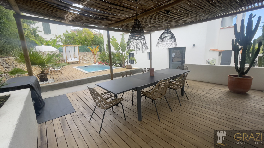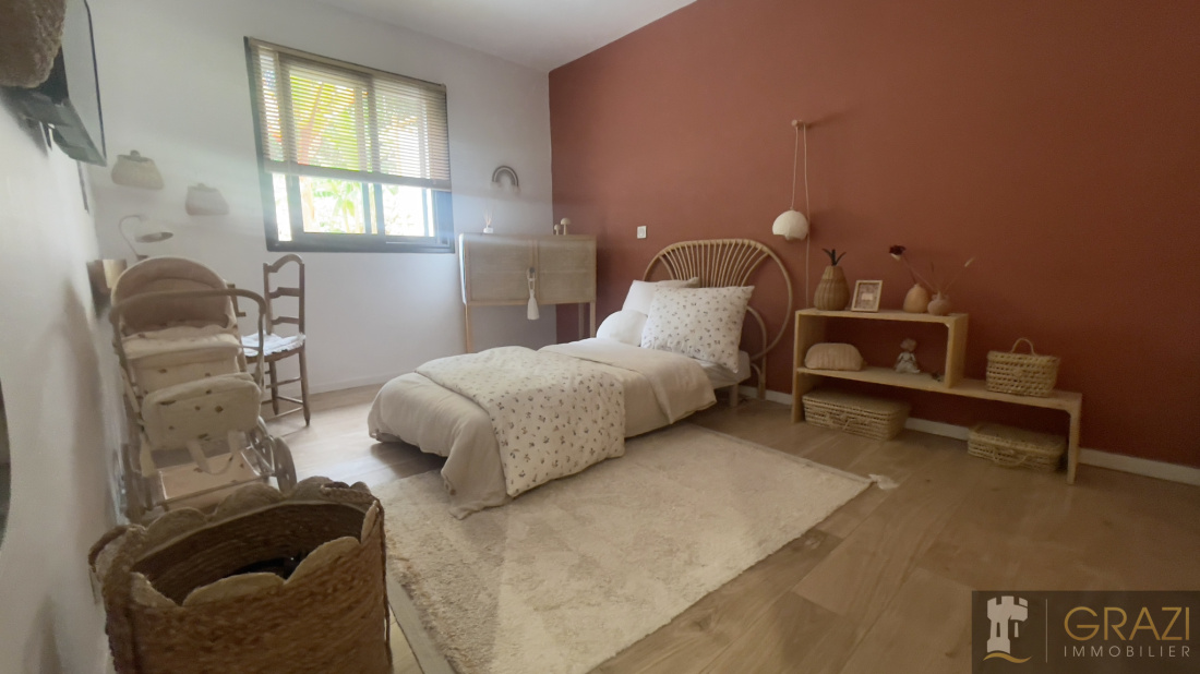 Rez-de jardin , située dans un quartier résidentiel paisible des 4 Chemins, offre un cadre idéal, à l'écart du bruit tout en restant proche des commodités. ,vous découvrirez une entrée avec rangements, trois chambres lumineuses avec dressings, et un espace de vie convivial qui combine salon, salle à manger et cuisine moderne entièrement équipée, avec cellier et buanderie attenants.L'espace extérieur comprend une terrasse couverte, une piscine et un jardin tropical, parfaits pour se détendre. Rénovée avec des matériaux de qualité, la maison est prête à vivre, sans travaux à prévoir. La façade, les menuiseries et les sols sont récents, garantissant confort et durabilité, tandis qu'une isolation thermique performante assure une consommation énergétique optimale. Montant estimé des dépenses annuelles d’énergie pour un usage standard : Entre 1 340 € et 1 870 € par an Prix moyens des énergies indexés au 1 janvier 2023 (abonnement compris)