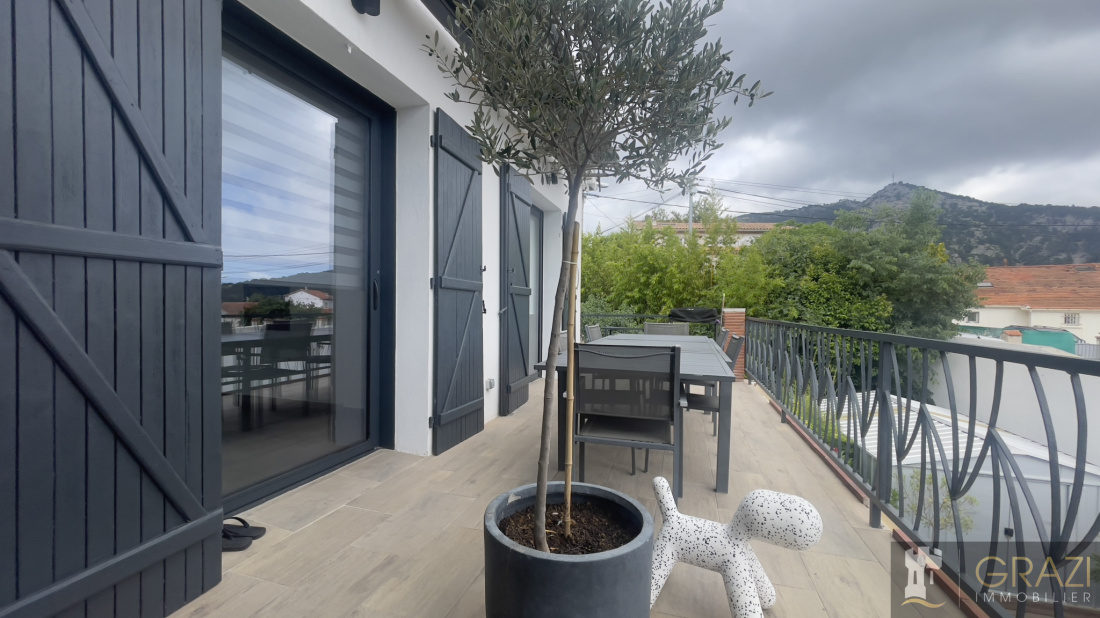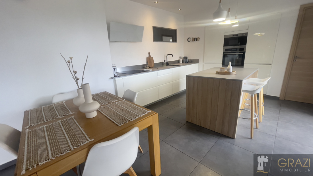 À vendre : haut de Villa d'exception 4 pièces – 99 m² dans un cadre de vie privilégié Découvrez cette magnifique haut de villa située dans le quartier paisible et prisé des 4 Chemins des Routes, nichée au fond d’une impasse, offrant un havre de tranquillité tout en étant à proximité des commerces et services essentiels.### Caractéristiques de la villa :- **Superficie :** 99 m² entièrement rénovés avec des matériaux haut de gamme.- **Agencement :**- **Deux suites spacieuses** :- Suite principale avec salle d'eau moderne, douche à l'italienne et dressing.- Deuxième suite avec salle de bains et dressing pour un confort optimal.- **Cuisine ouverte** : Equipée et aménagée, parfaite pour les passionnés de cuisine.- **Séjour lumineux** : Un espace convivial pour vos moments en famille ou entre amis.- **Cellier/Buanderie de 12 m²** : Possibilité d’aménager une troisième chambre selon vos besoins.- **Terrasse de 18 m²** : Profitez d'une vue dégagée, idéale pour vos repas en extérieur ou vos moments de détente.- **Place de stationnement sécurisée** : Accès facile et sécurisé à votre véhicule.### Avantages supplémentaires :- **Aucun travaux à prévoir** : L'intérieur et l'extérieur sont en parfait état. La façade a été récemment refaite, et toutes les menuiseries en aluminium double vitrage apportent confort et sécurité.- **Durabilité et confort** : Les sols et équipements ont été choisis avec soin pour leur longévité. De plus, l'isolation thermique de cette villa assure une consommation énergétique particulièrement faible, réduisant vos factures.Ne manquez pas l'opportunité de devenir propriétaire de cette villa d'exception, alliant confort, modernité et tranquillité. Idéale pour une famille ou un couple à la recherche d'un cadre de vie agréable et pratique.**Contactez-nous dès maintenant pour visiter ce bien rare !